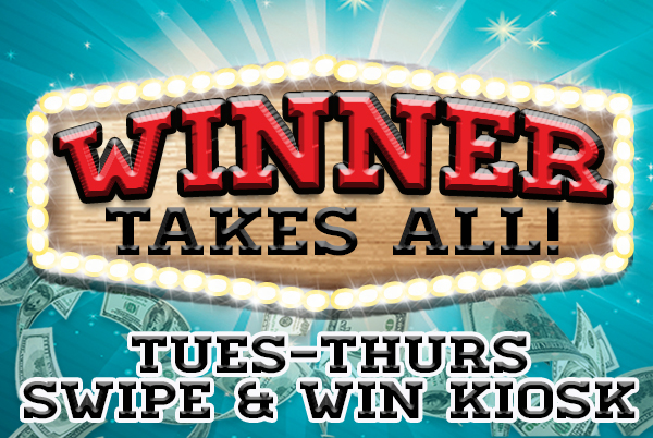 Swipe your MyParty Player’s Card at the kiosk every Tuesday, Wednesday and Thursday to play the Winner Takes All kiosk game!  Everyone is a WINNER!  Prizes of FreePlay, BONUS Slot Tournament Entries, Point Multipliers, Food and even $250 CASH!